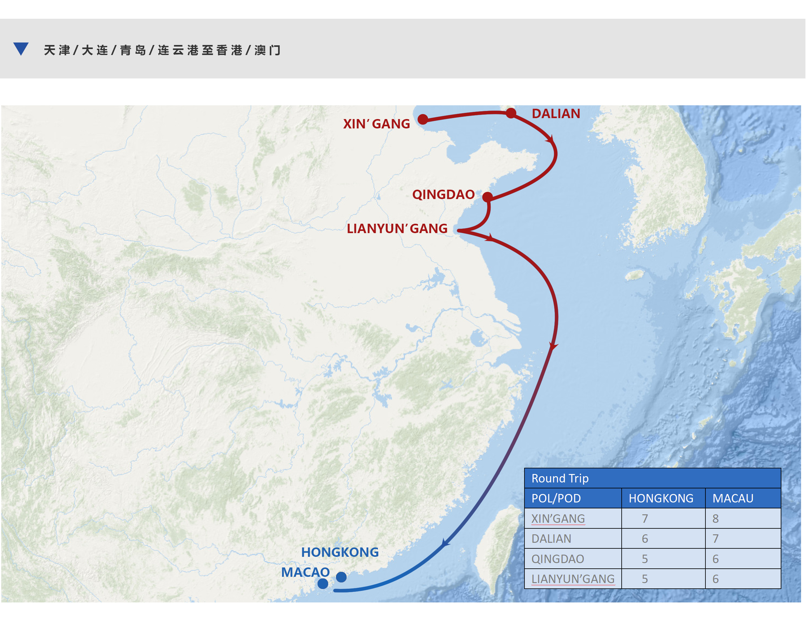 天津/大连/青岛/连云港至香港/澳门